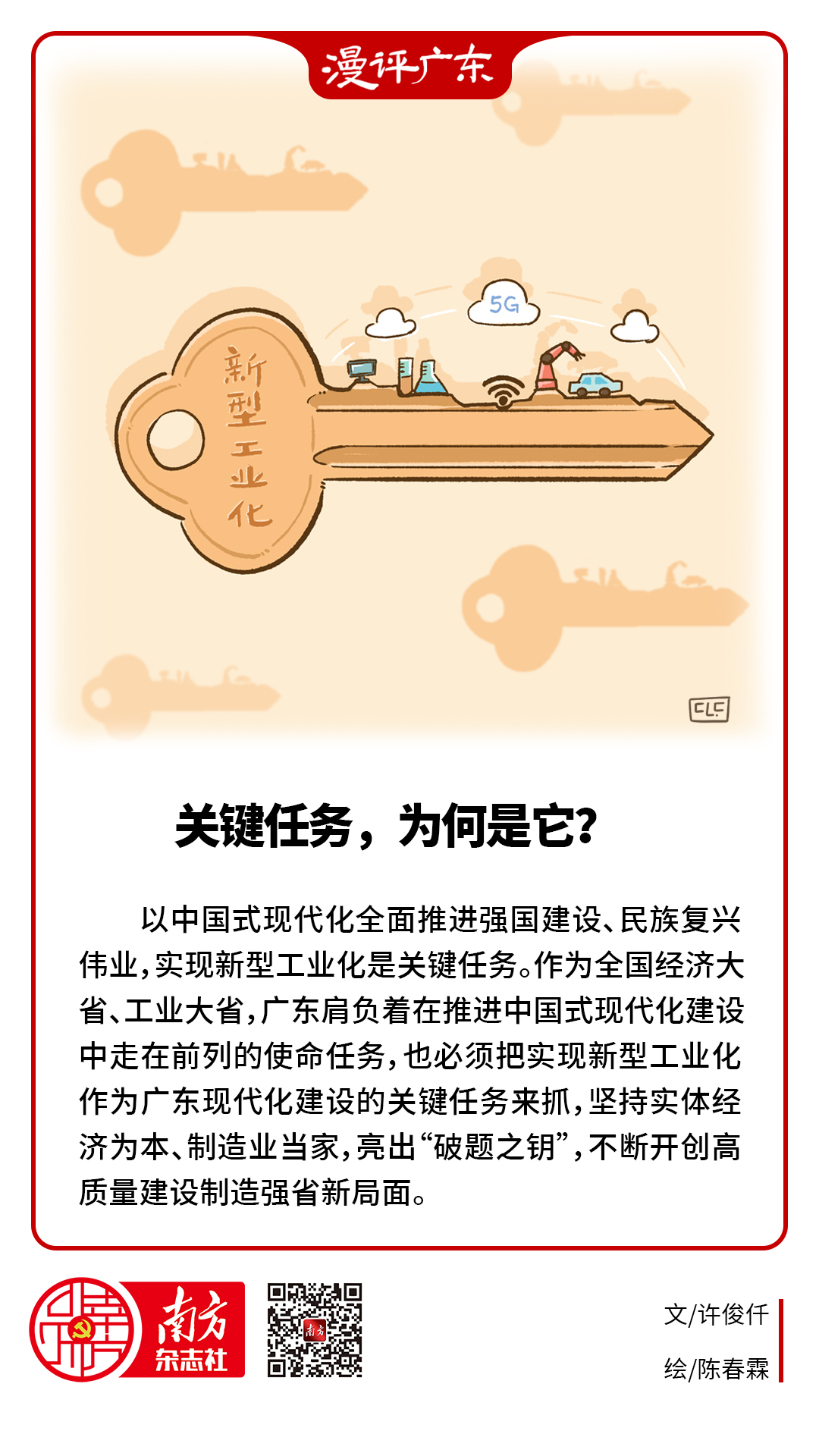 牢牢扣住高质地这个重要词,塌实激动新式工业化,广东必将增强工业发展新动能,助推中国式当代化,厚植制造强省新上风。