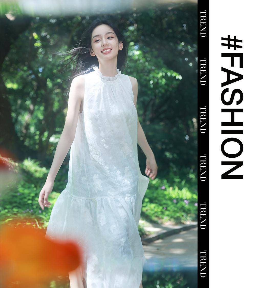 难怪穿上黄绿色印花吊带裙的钟楚曦,看起来愈加明媚、有活力了。比起古早的森女风,这种被覆上了夏季阳光的新森系穿搭,反而愈加迷东说念主。